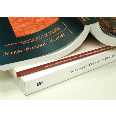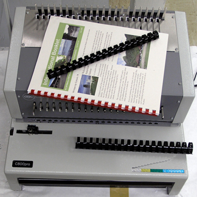 提供膠圈、鐵圈、騎釘、熱溶膠裝等釘裝服務,另有過膠、打孔、裁切、壓線、針線等後加工服務。